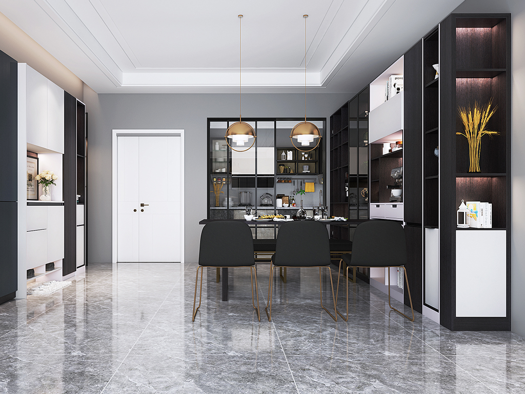 餐边柜酒柜一体化规划,满意收纳、备餐、藏酒等多种日子需求。柜体到顶,拓荒更多储物区,分门别类收纳;延伸出的间隔柜,扩大收纳空间,间隔客餐厅,打造安静用餐区。