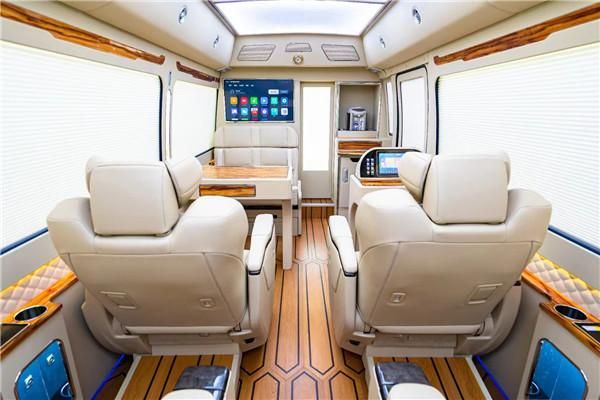 预算足够且寻求特性的用户都能够选它,雾化隔断门、智能酒柜、睡觉舱都是亮点,游艇柚木地板质感十足,房车版还有卫浴模块,支撑深度改装,定制周期约15-30天。