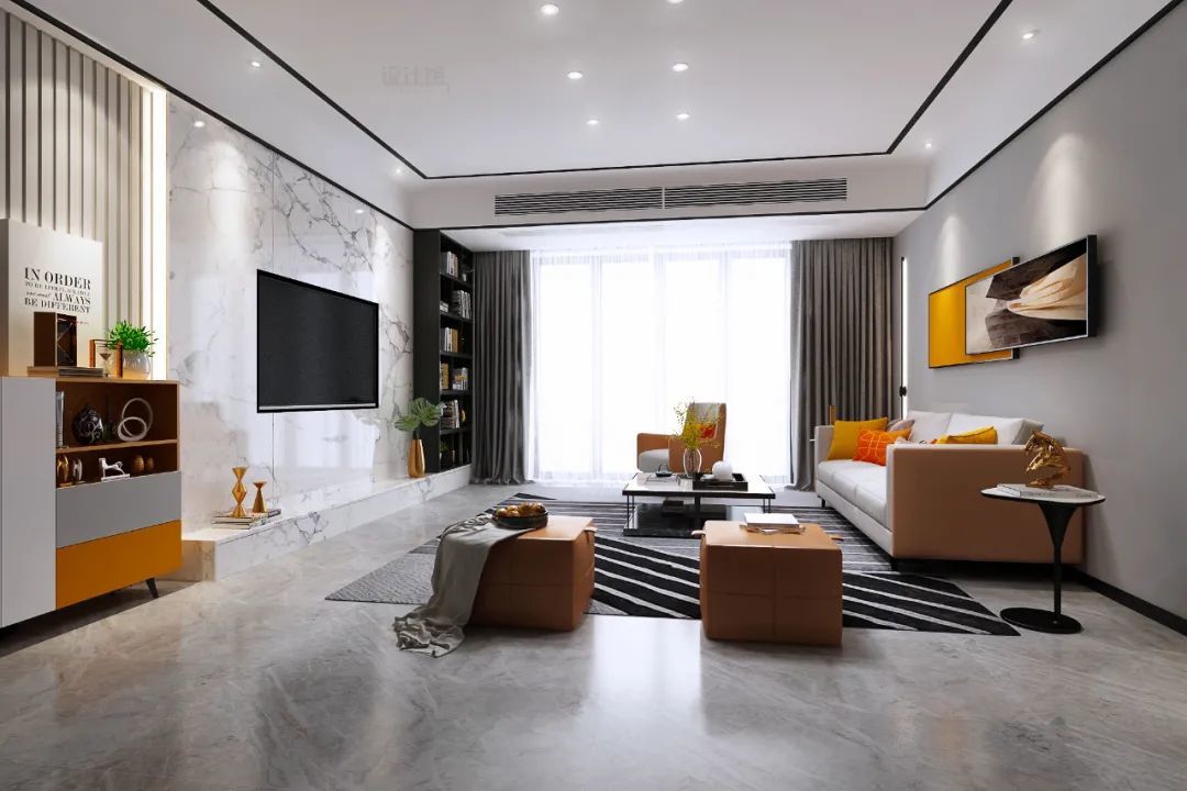 一般以大理石为地台电视柜,基本都是整个地台都是被石材覆盖的,如果你想要提升地台电视柜的实用性,也可以用大理石作为台面与侧边的材质,然后在地台内部装上抽屉,让电视柜显得实用而时尚大方。